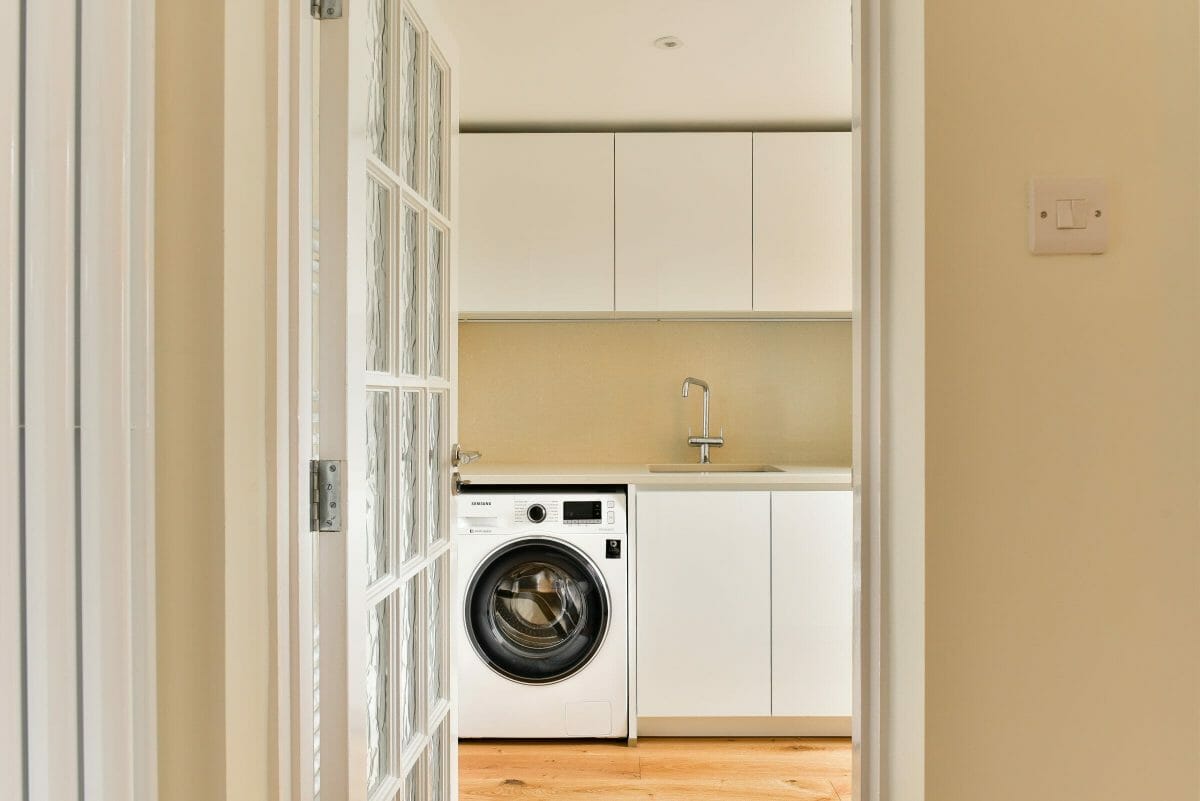 A specialist worktop-mounted appliance storage unit, larder internals, deep drawers and a matching utility space all then help this become a highly practical space to entertain the whole family. The design is topped with polished quartz and finished with a matt black American fridge freezer, Quooker boiling water tap and Neff ovens and induction hob.