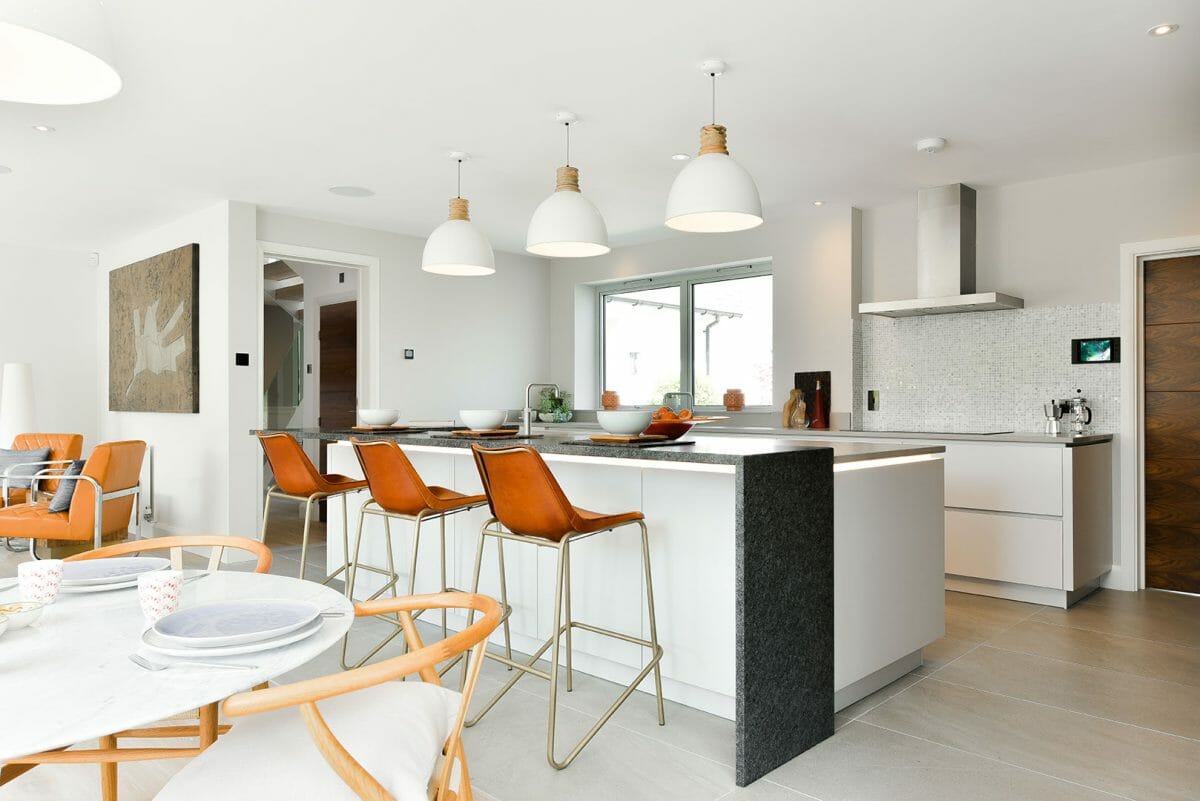 The light colour palette of white and grey was selected to compliment the décor throughout the ground floor. It acts as a calming canvas on to which splashes of colour could be added.